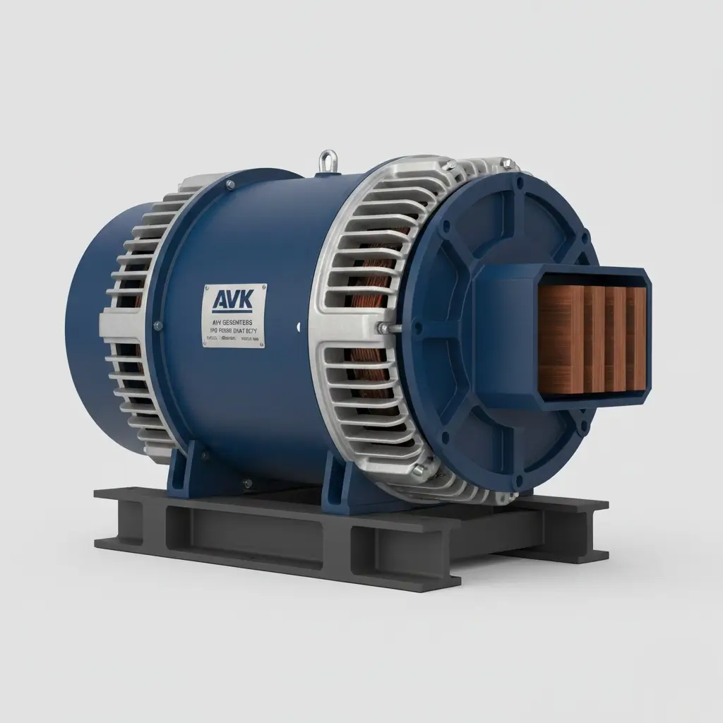 High-efficiency AVK Alternator for HFO Power Plants, designed for continuous-duty power generation. Supplied by Alfaz Marine, suitable for base-load and auxiliary power applications with proven reliability and marine/industrial compliance.